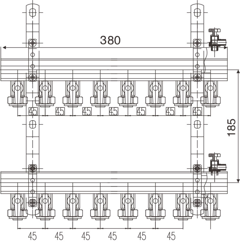 1、分水管上帶各流量控制閥;