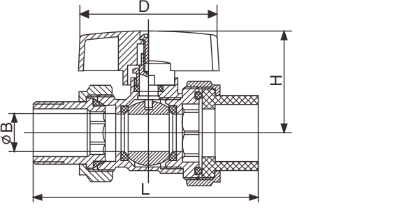 電鍍蝶型PP-R活接球閥